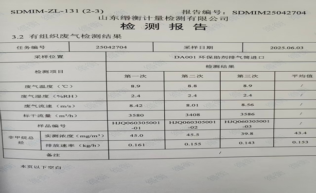 2025年公司与济宁晨润环保科技有限公司签订危险废物处置合同;2025年共计产生危险废物0.65吨,共安全转移处置危险废物0.65吨,其中上期贮存量0吨,年末库存量0吨。
